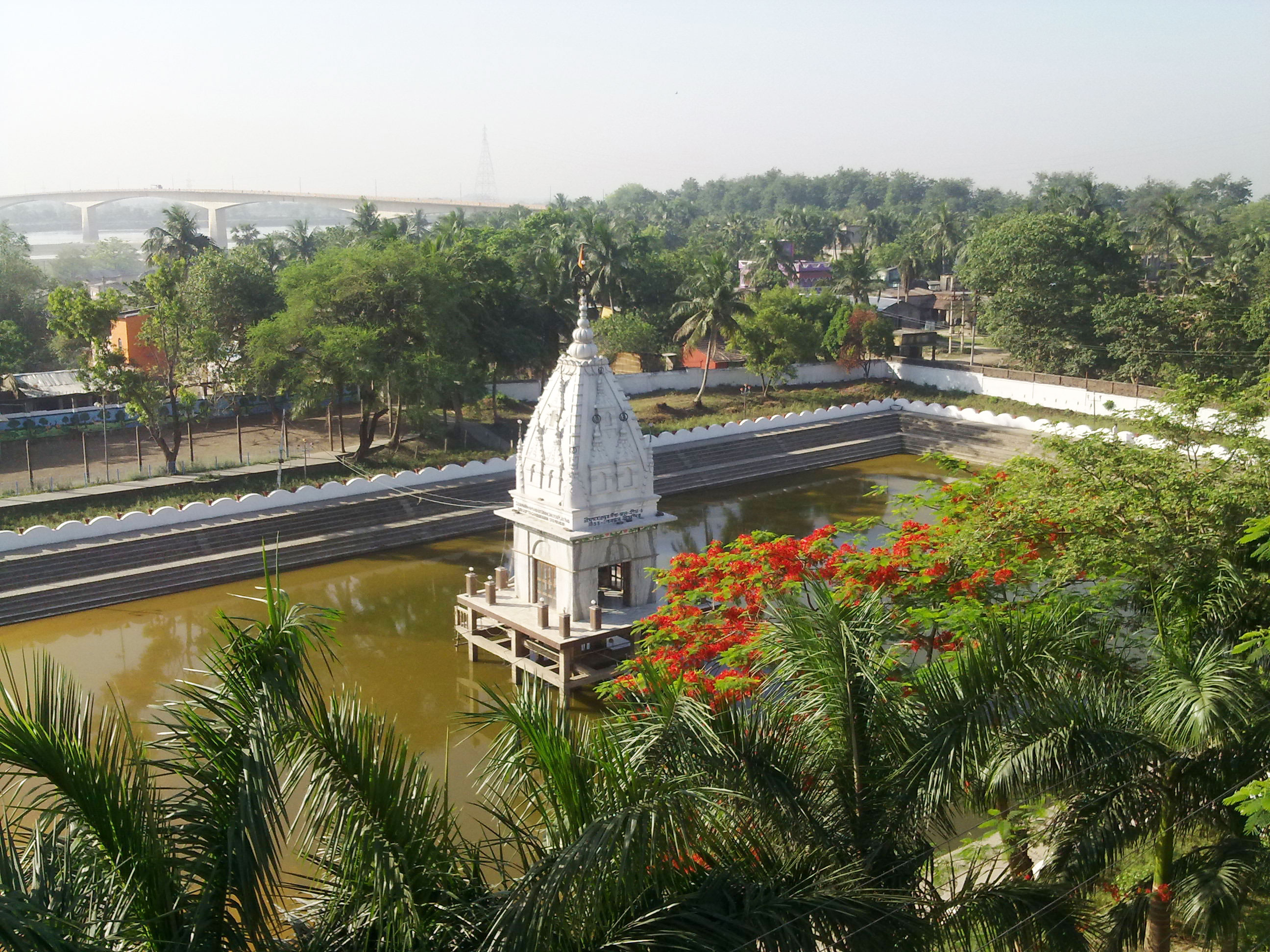 When Srila Sridhar Maharaj first came here, he had the Deity of Giridhari (a Govardhan sila) that he had brought from Vrindavan. Mahaprabhu’s Deity was installed in 1944–1945, and about four years after our Gurudev, Om Visnupad Srila Bhakti Sundar Govinda Dev-Goswami Maharaj, joined the temple, the Deities of Sri Sri Gandharva Govindasundar jiu were brought from Vrindavan and installed at the temple. The construction of the main temple began later, sometime in 1955, and it took almost twenty years to complete it (the construction finished in 1973). After that, in 1975, the construction of the nat-mandir started. This is the brief history of our temple in Koladwip. When Sakhi Charan Prabhu heard the sloka extolling Sri Chaitanya Saraswat Math (‘Srimach-chaitanya-sarasvata-mathabara…’), he said to Srila Sridhar Maharaj, ‘You have nothing except a small thatched house – you are using a brick for a pillow and sleep on some straw – but you have put up such a big bamboo pole and composed such a high sloka!’ Srila Sridhar Maharaj replied, ‘You will see in the future what will be here.’ We can easily realise what Srila Sridhar Maharaj implied if we see the present-day miraculous form of the temple, resembling a whole town. And this is not just some grand buildings! When the ground floor of the temple was completed, the master of Koladwip (Sri Sri Laksmi-Varahadev) personally came here, out of His own accord and in a very miraculous way, in the form of a salagram-sila. This salagram-sila originally lived in the house of a king, but because many problems started happening at the house, the king gave the salagram-sila to a big pandit. Some time later, problems started happening at the house of the pandit, too. One day, that pandit met with Srila Sridhar Maharaj and told him, ‘This salagram-sila is creating disturbance everywhere. Please take this salagram-sila away from here.’ Srila Sridhar Maharaj agreed, and told the pandit to send his sila to Sri Chaitanya Saraswat Math. At first, the pandit sent the salagram-sila to the temple of Srila Jajavar Maharaj in Midnapore, but two weeks later the sila started creating so much disturbance again that nobody could even stay at the temple anymore! Then, Srila Jajavar Maharaj wrote a letter to Srila Sridhar Maharaj, saying, ‘Please take your sila away from here!’ Because Midnapore is a little far from Nabadwip, Srila Sridhar Maharaj told Srila Jajavar Maharaj to send the sila to the temple of Srila Goswami Maharaj in Kolkata, who would later send it from there to Nabadwip. Srila Jajavar Maharaj sent the sila to the temple of Srila Goswami Maharaj, who thought, ‘I have got a salagram-sila! I will keep it here.’ He knew that Srila Sridhar Maharaj would not mind it, so he kept the sila at his temple. During the next fifteen days, again so many things happened at the temple. Srila Goswami Maharaj thought, ‘This sila is very bad for my temple!’ He wrote a letter to Srila Sridhar Maharaj, saying, ‘Maharaj, please take your sila from my temple as soon as possible.’ Then, Srila Sridhar Maharaj sent Srila Govinda Maharaj to Kolkata to bring this salagram-sila to Nabadwip. When the salagram-sila finally arrived, Srila Sridhar Maharaj told Srila Govinda Maharaj, ‘What is the matter? Why does this sila cause so much disturbance? Look up the name of this salagram-sila.’ Then, Srila Govinda Maharaj searched the descriptions of many salagram-silas in Hari-bhakti-vilasa and Garuda Purana and found out that this salagram-sila had the symptoms of Sri Sri Laksmi-Varahadev. Srila Sridhar Maharaj also said, ‘I thought that it was Laksmi-Varahadev, too. He is the master of Koladwip, so He wanted to come to his Koladwip. But to be sure, write a letter to the pandit where the sila stayed at first and ask him.’ The pandit replied that, yes, it was indeed Laksmi-Varahadev. Then, Srila Sridhar Maharaj said, ‘That is it! That is why He did not want to stay anywhere. This is His own place here, that is why He wanted to come here.’ The worship of Sri Laksmi-Varahadev is very difficult. Srila Sridhar Maharaj said that Sri Laksmi-Varahadev must be offered nice, specially made sweet rice every day. From that time, Sri Laksmi-Varahadev has been living at the temple happily, and the temple started growing very quickly. Before that, there were no houses, no temple, there was only one three-room building; but after that, the temple was built and so many other buildings appeared – especially Sri Govinda Kunda, which manifested later in a very special and beautiful way along with the temples of Sri Sada Siva Gangadhar and Sri Giriraj Govardhan.