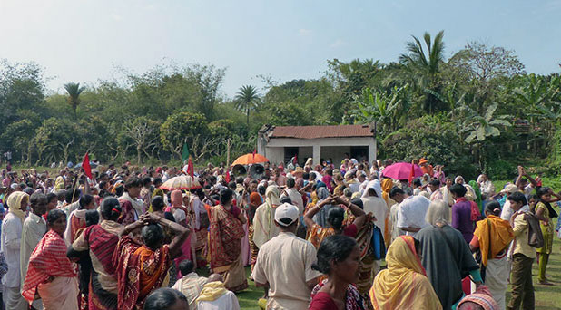 The village of Sri Chapahati is situated between Koladwip and Ritudwip, so as we continue our way with the parikrama, we proceed from Sri Dvija Vaninath’s temple and now, by the mercy of Sri Gurupadpadma, have entered Sri Ritudwip. Because all six seasons (spring, summer, monsoon, autumn, pre-winter, winter) exist here beautifully all together, this island is called Sri Ritudwip (ritu means ‘seasons’). Among the nine kinds of devotion, this island is the place of archan, or Deity worship. Sriman Nityananda Prabhu came here with Srila Jiva Goswami Prabhu and a few other devotees. When He saw this enchanting island, He immediately became spell-bound. The environment at this place – with its trees, breeze, flowers, bumble-bees, etc. – is very beautiful and sweet, non-different from Sri Vraja Dham. Coming to this place, we remember a sloka that was composed by Srila Jayadev Goswami Prabhu and that we heard from the holy lotus mouth of our Srila Guru Maharaj: