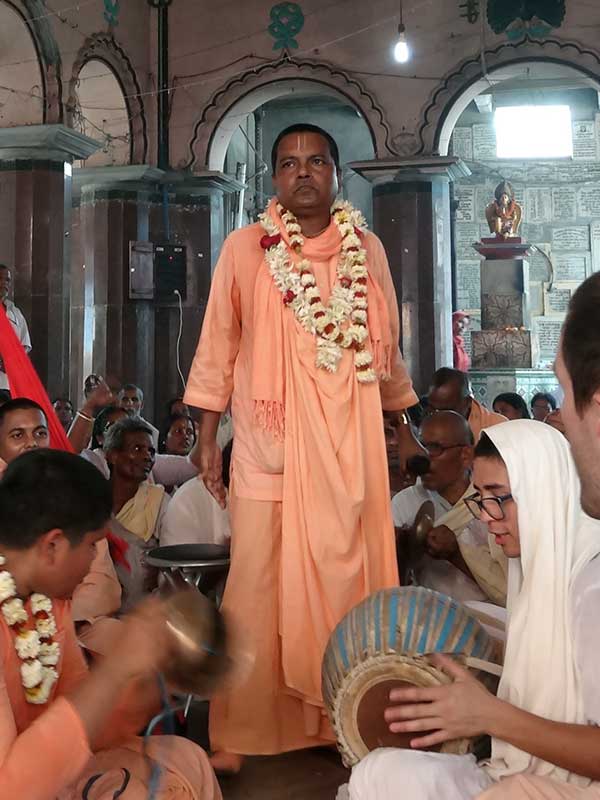 “tararai kinchin-matra karena bhajana ‘From that, she ate only a little. Nobody knows how she kept her body and soul together.’ If we are to become sincerely (without any sinful purposes) firm in following the example of spiritual life that was shown by Sri Vishnupriya Devi, we will embrace the great fortune of being able to join the grand festival of remembering Sri Gaura in the holy abode of Sri Gaura in the association of Sri Gaura’s associates – throwing ourselves into the great sacrificial fire of sankirtan at the sankirtan-rasa-sthali revealed by Sri Gaurasundar, we will attain the highest auspicious opportunity to become servants of the servants at a dwelling established by Sri Chaitanya Saraswati next to this sankirtan-rasa-sthali, the place where everything favourable to Krishna consciousness is practised.