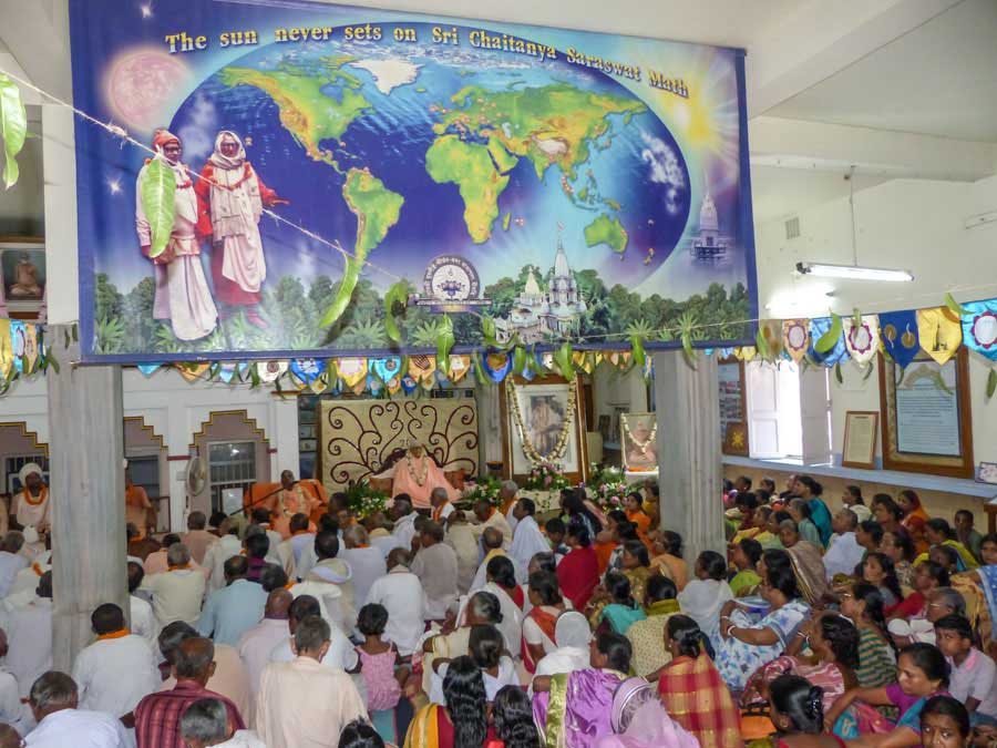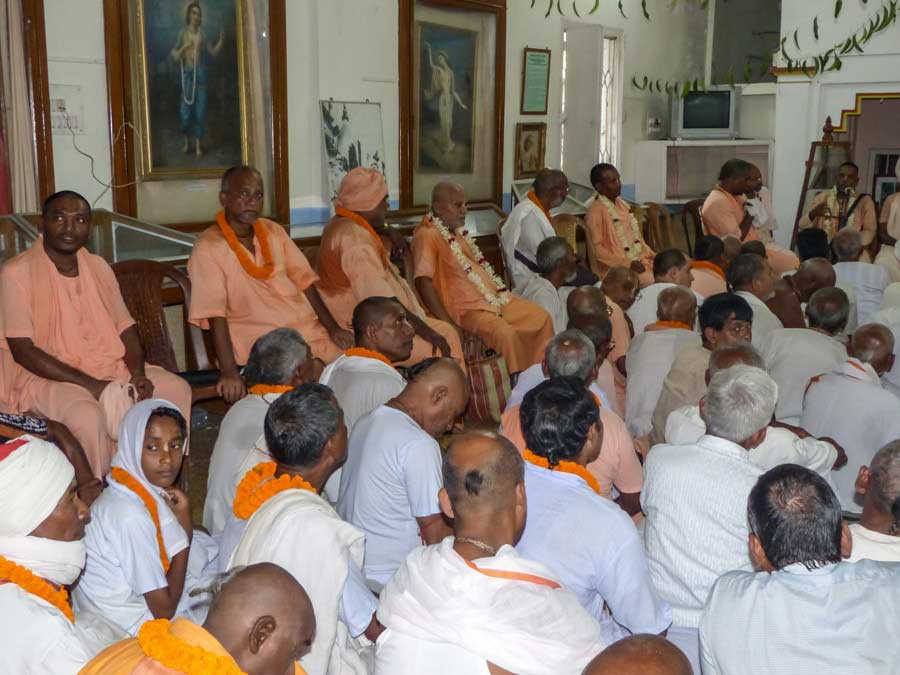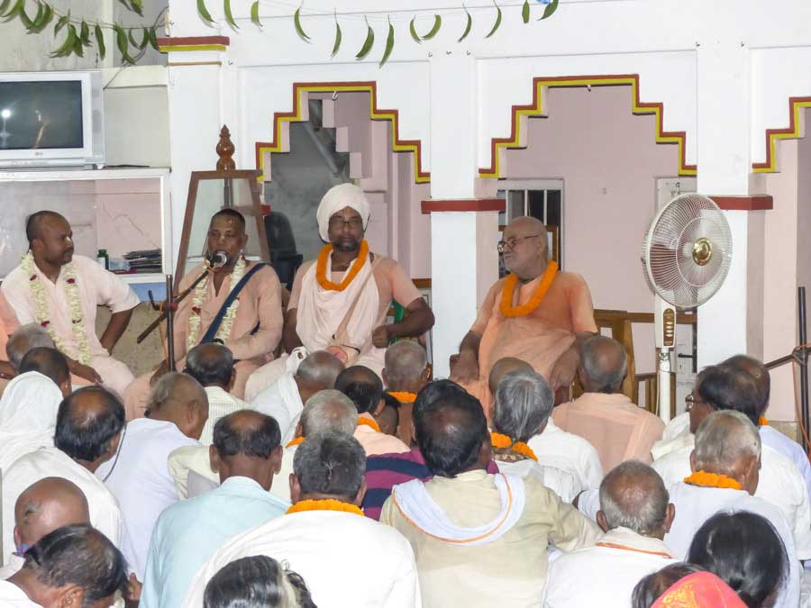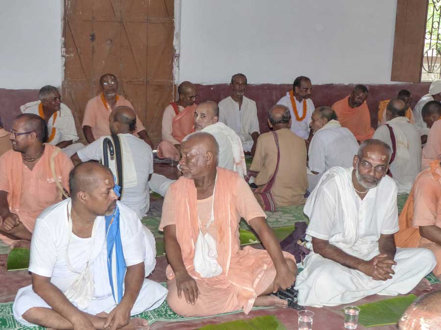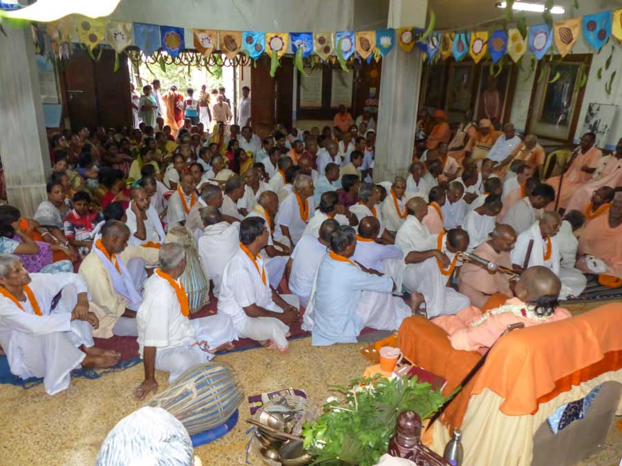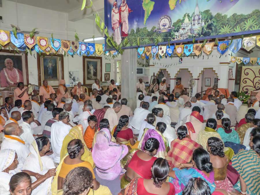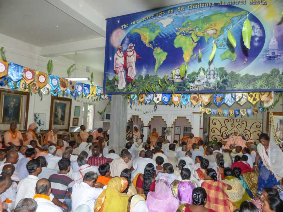 Following the morning programme, Srila Bhakti Nirmal Acharya Maharaj is presiding over the Vaishnava assembly, gathered later in the afternoon to glorify and remember His Divine Grace, Srila Bhakti Raksak Sridhar Dev-Goswami Maharaj.