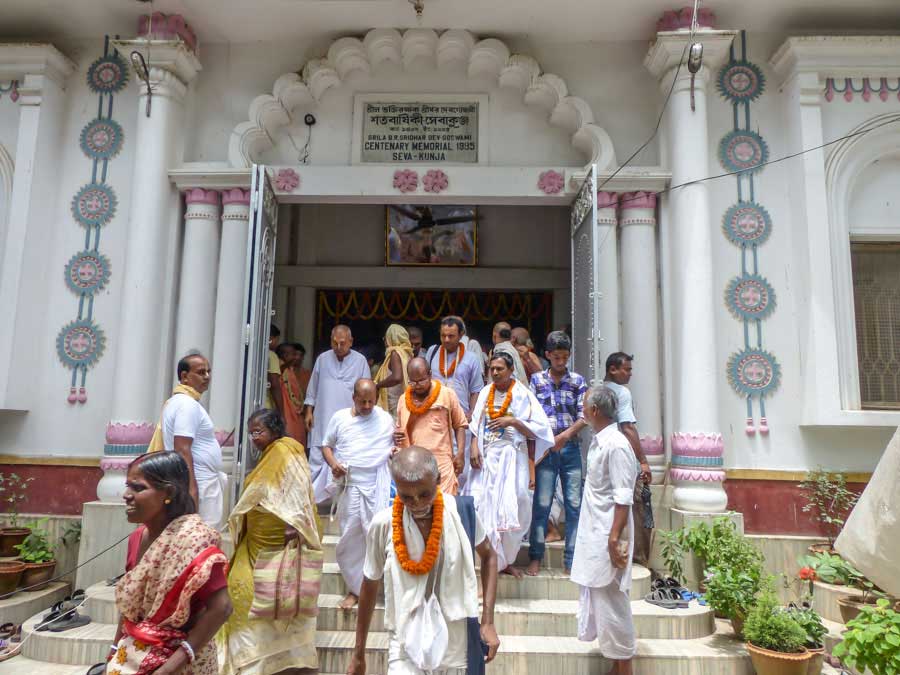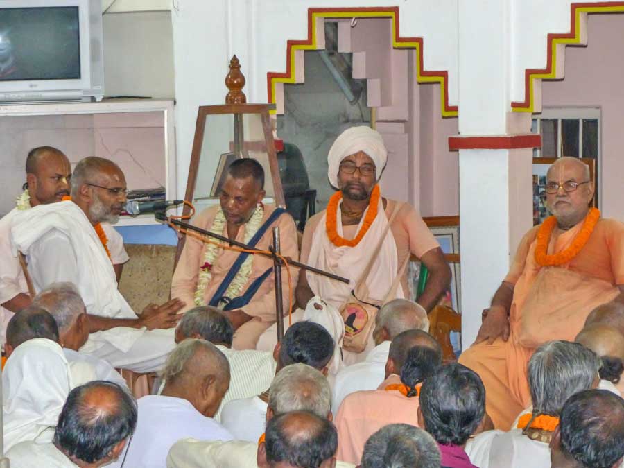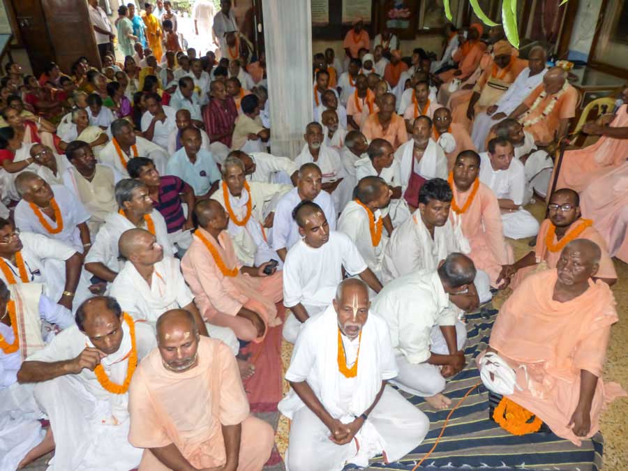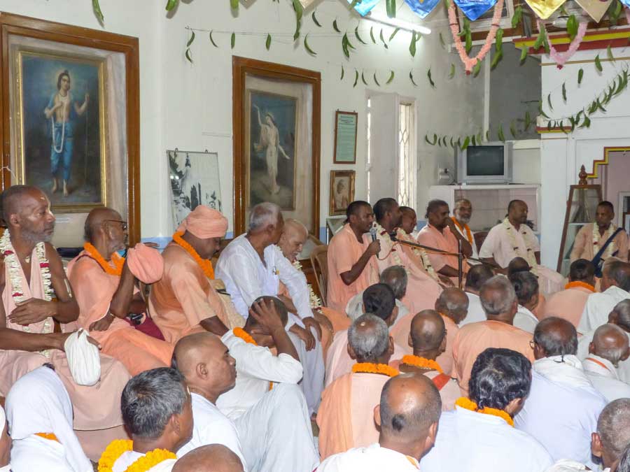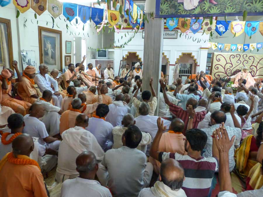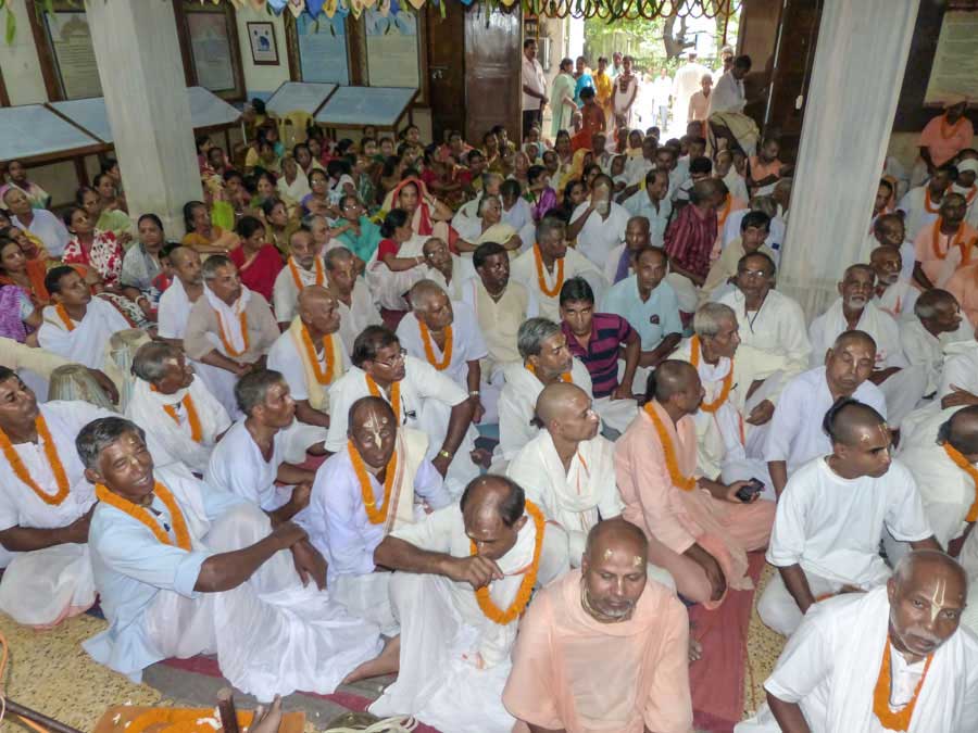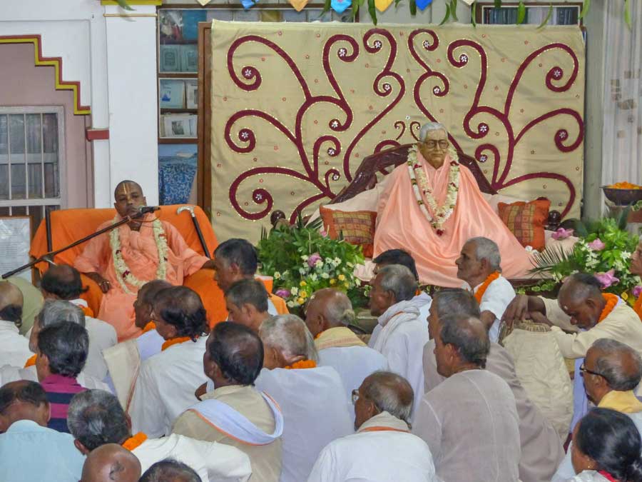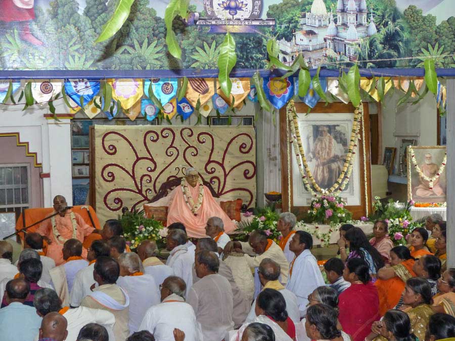 Following the morning programme, Srila Bhakti Nirmal Acharya Maharaj is presiding over the Vaishnava assembly, gathered later in the afternoon to glorify and remember His Divine Grace, Srila Bhakti Raksak Sridhar Dev-Goswami Maharaj.