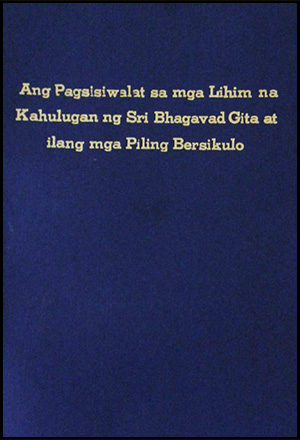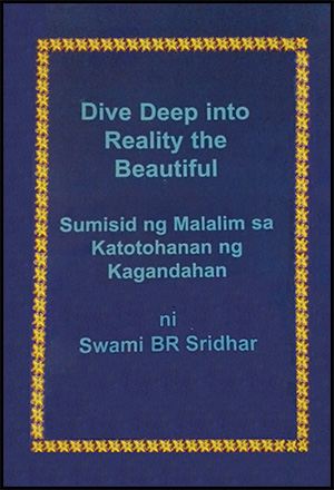 His Divine Grace is meeting with a group of fortunate devotees from Russia, giving second initiation to Nimai Priya Devi Dasi, as well as receiving two new publications from the Philippines branch of Sri Chaitanya Saraswat Math: "Sumisid ng Malalim sa Katotohanan ng Kagandahan" ("Dive Deep into Reality The Beautiful") and "Ang Pagsisiwalat sa mga Lihim na Kahulugan ng Sri Bhagavad Gita at ilang mga Piling Bersikulo" (a booklet dedicated to a selection of verses from Srimad Bhagavad-gita).