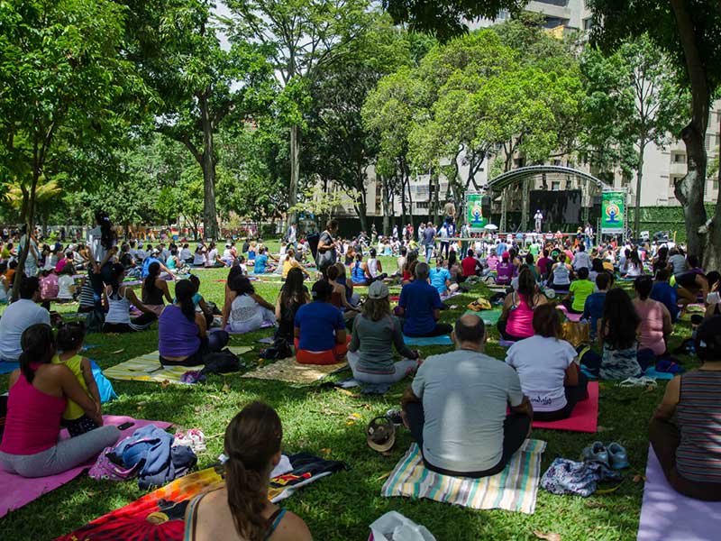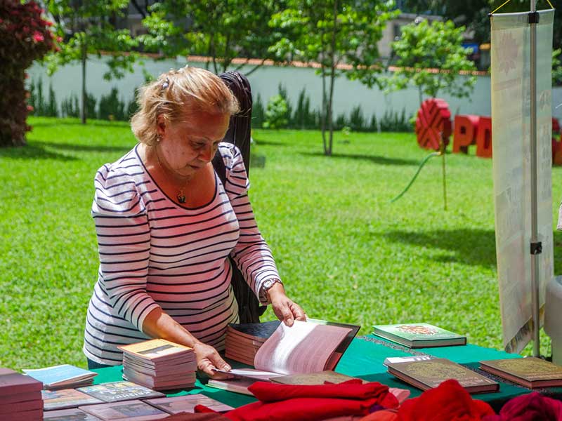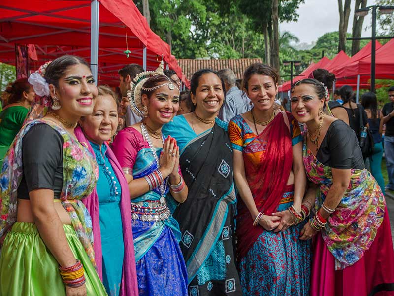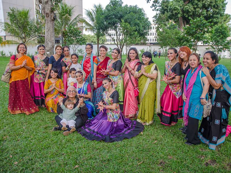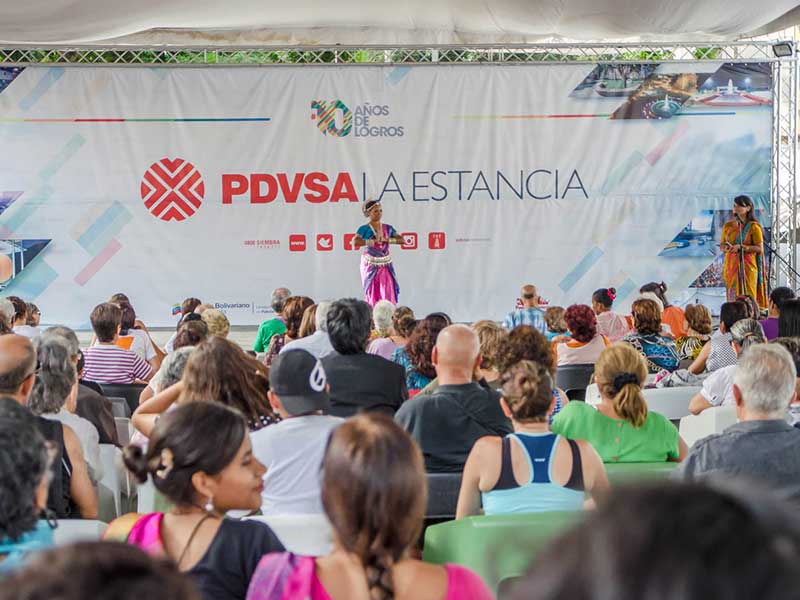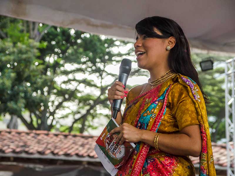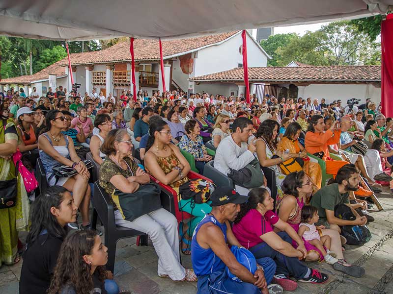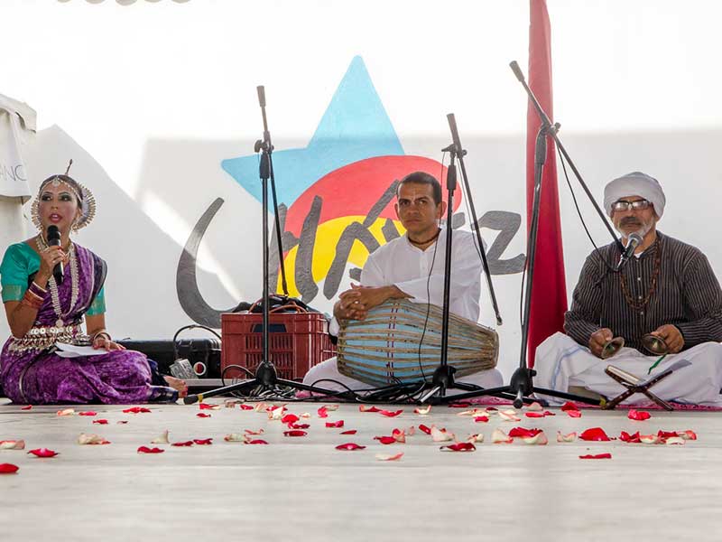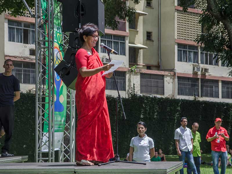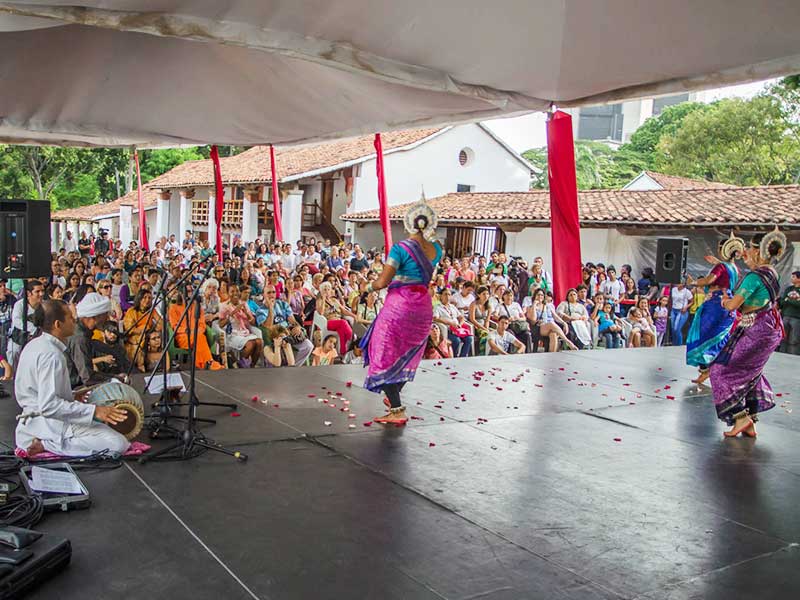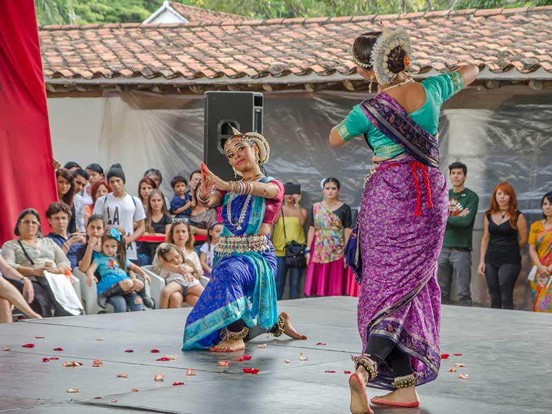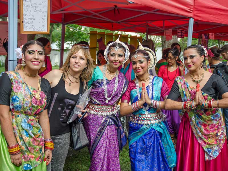 For three days from 19 to 21 June the devotees from Venezuela and Colombia participated in the International Festival of Yoga held yearly in Caracas, Venezuela, representing and preaching on behalf of Sri Chaitanya Saraswat Math. Sripad Hari Kirtan Prabhu was one of the organisers of the festival and through him the devotees could take a prominent part and preach extensively through the Odissi dances, kirtans, books, as well as stalls with ethnic clothing and various savouries. This festival also was a very good opportunity to gain TV coverage and promote Sri Chaitanya Saraswat Math among such influential personalities as the ambassadresses of India (Smita Purushottam), Malaysia, Thailand, Singapore, and others. Sending these pictures, the devotees write: "Hari Kirtan Prabhu invited us to participate [in this festival] as his offering to Srila Acharya Maharaj, and we are very happy to offer this seva and our dandavat pranams to the lotus feet of our dearmost Srila Acharya Maharaj and to all the devotees of Sri Chaitanya Saraswat Math family."