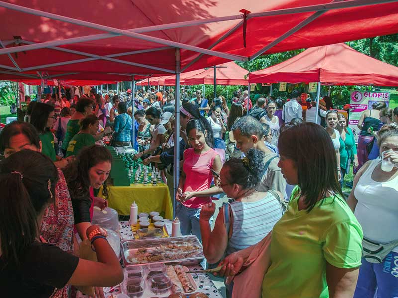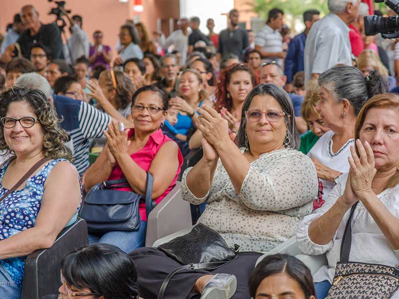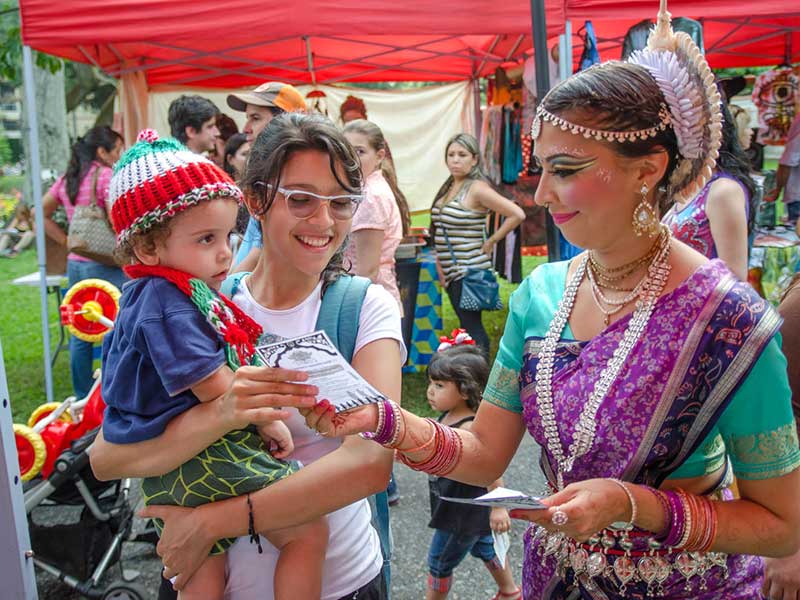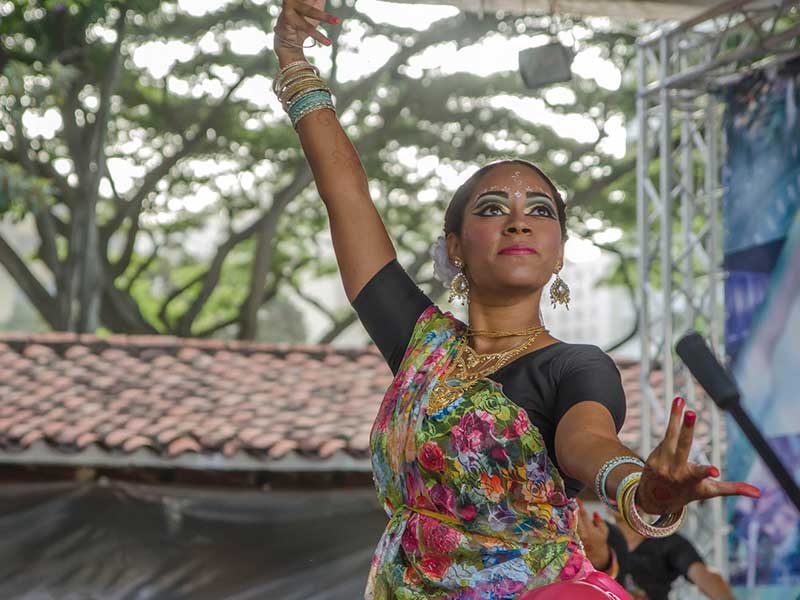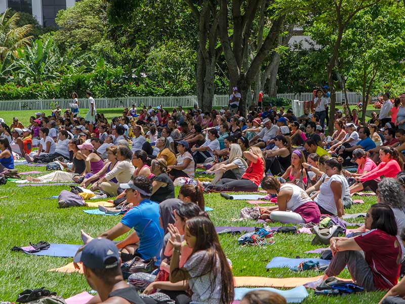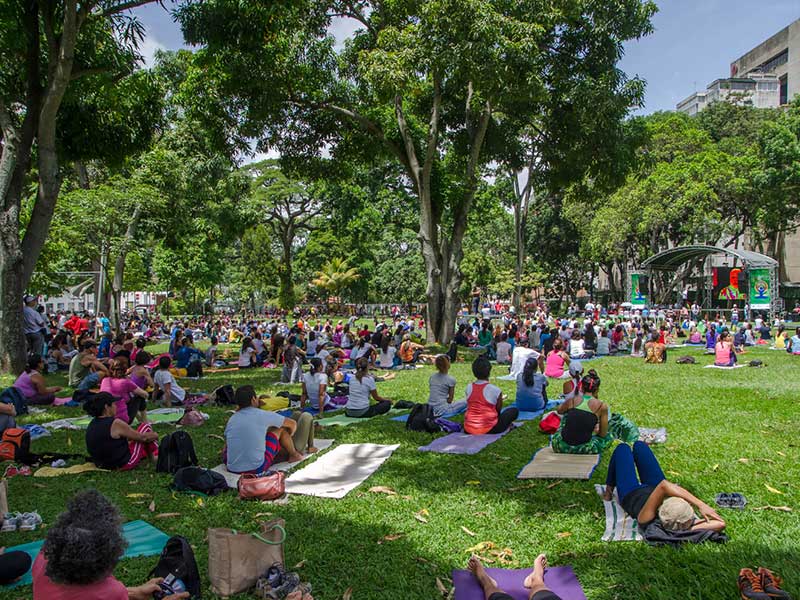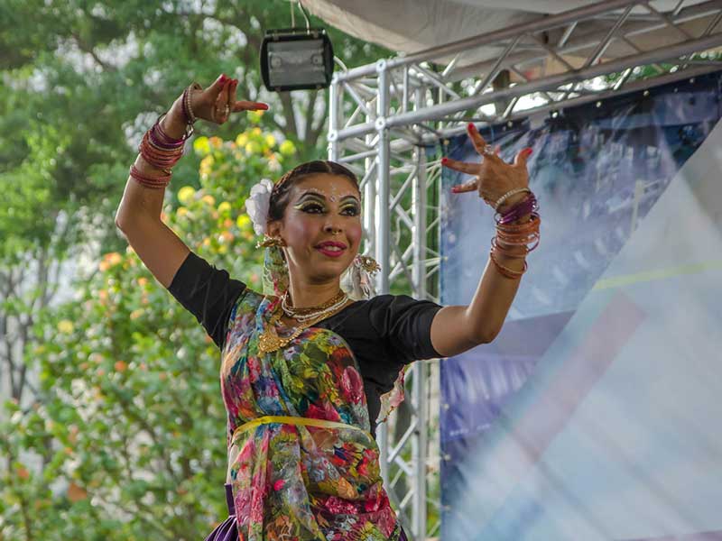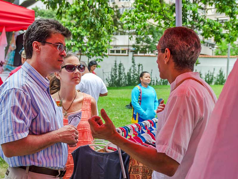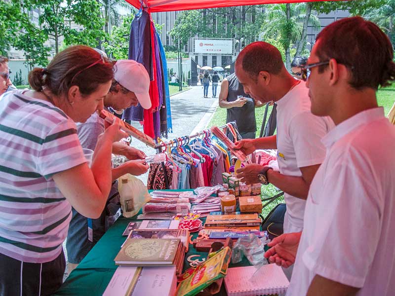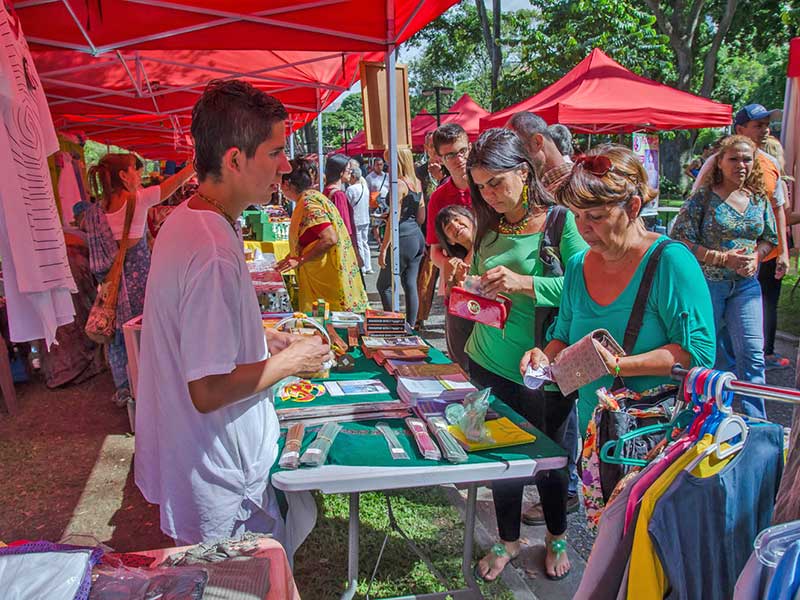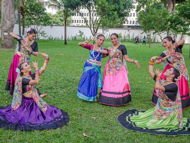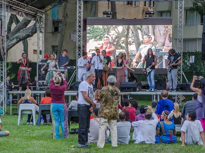 For three days from 19 to 21 June the devotees from Venezuela and Colombia participated in the International Festival of Yoga held yearly in Caracas, Venezuela, representing and preaching on behalf of Sri Chaitanya Saraswat Math. Sripad Hari Kirtan Prabhu was one of the organisers of the festival and through him the devotees could take a prominent part and preach extensively through the Odissi dances, kirtans, books, as well as stalls with ethnic clothing and various savouries. This festival also was a very good opportunity to gain TV coverage and promote Sri Chaitanya Saraswat Math among such influential personalities as the ambassadresses of India (Smita Purushottam), Malaysia, Thailand, Singapore, and others. Sending these pictures, the devotees write: "Hari Kirtan Prabhu invited us to participate [in this festival] as his offering to Srila Acharya Maharaj, and we are very happy to offer this seva and our dandavat pranams to the lotus feet of our dearmost Srila Acharya Maharaj and to all the devotees of Sri Chaitanya Saraswat Math family."