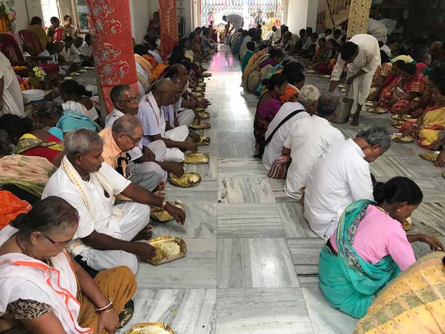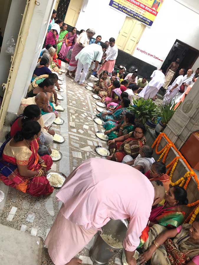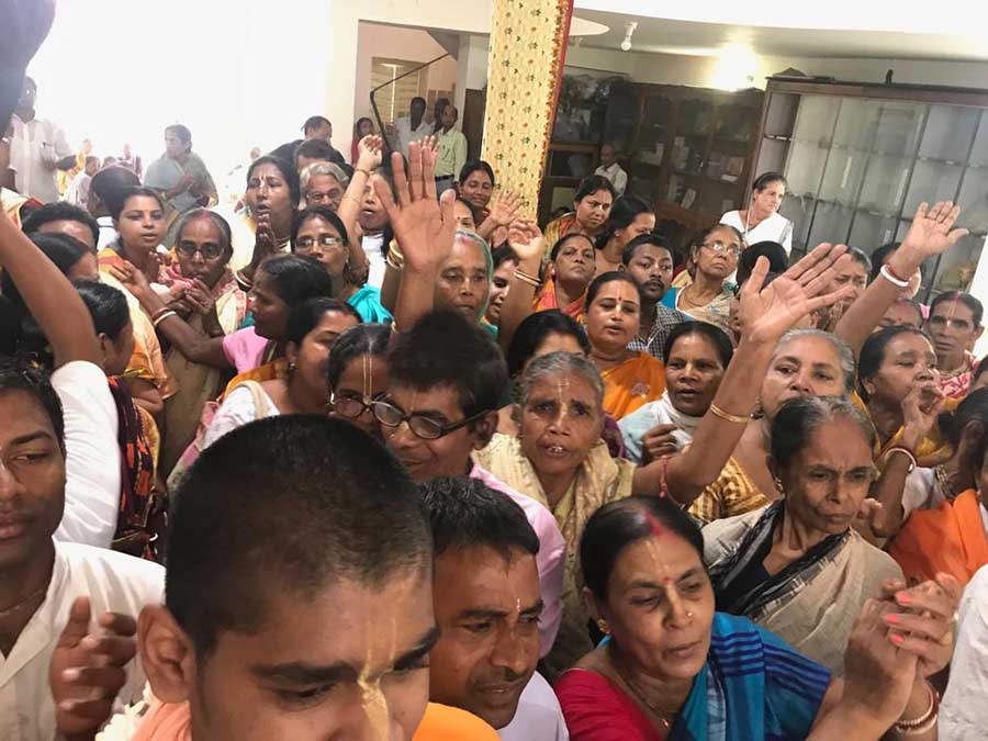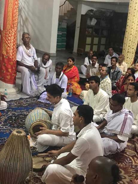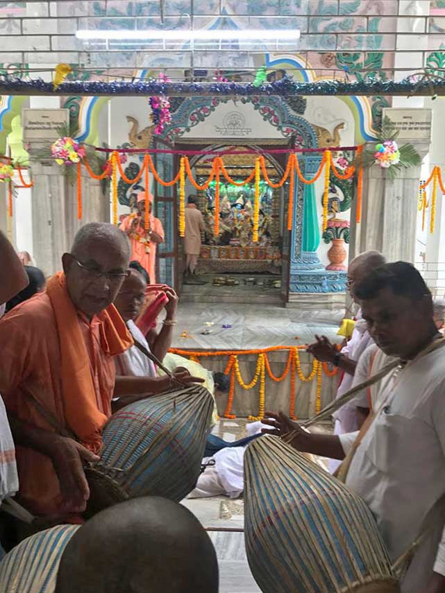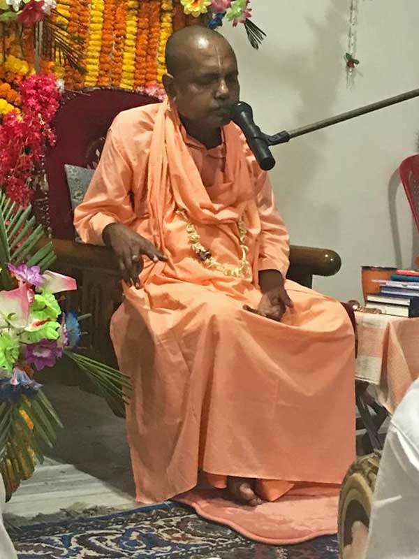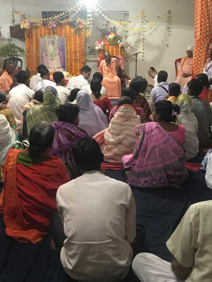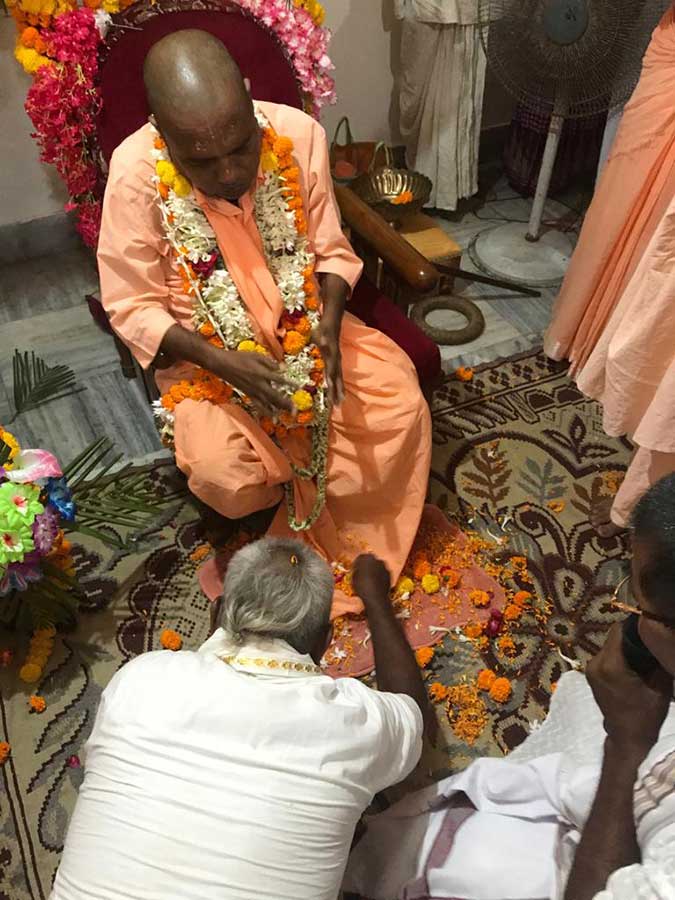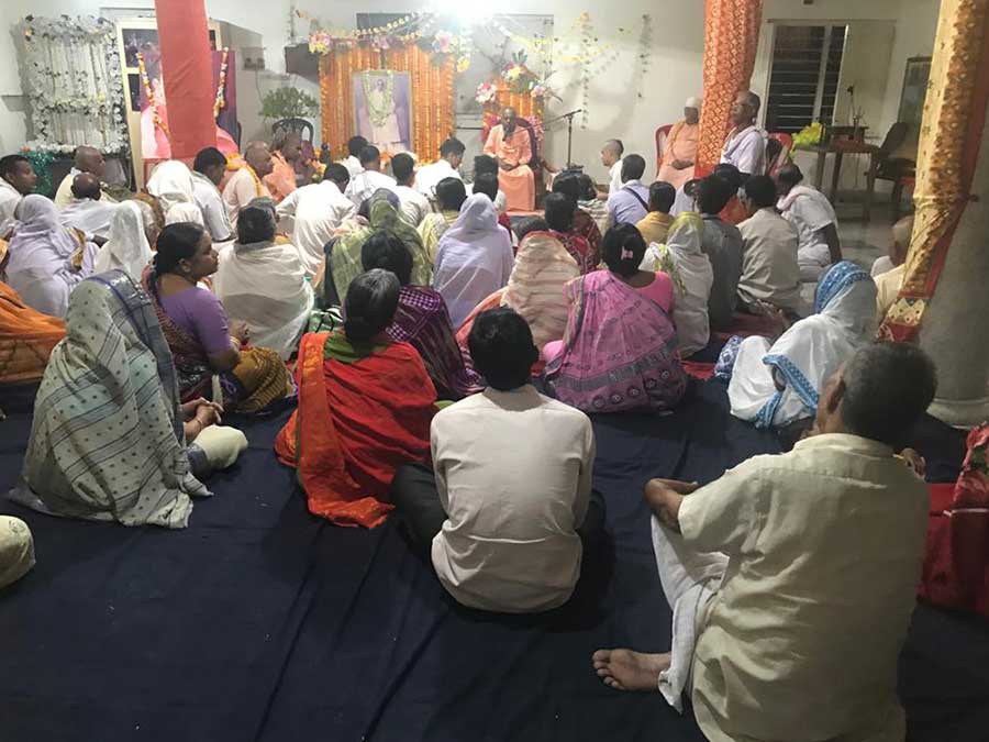 Devotees offer Sri Guru-puja and puspanjali to His Divine Grace.
