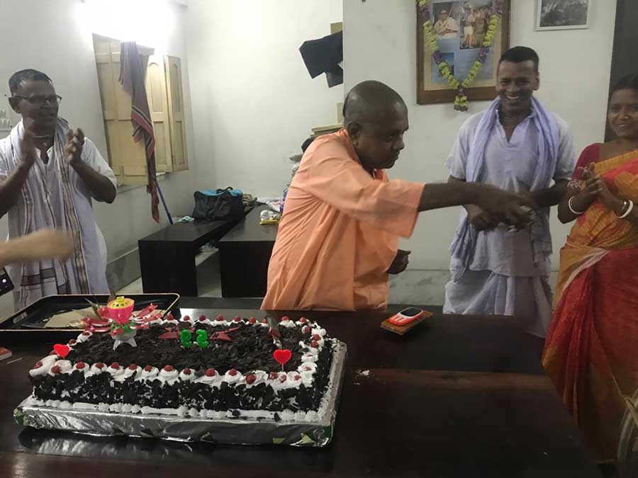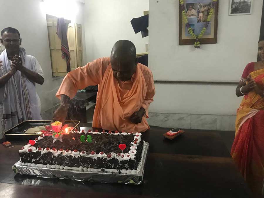 Later in the afternoon, devotees present His Divine Grace with a cake.