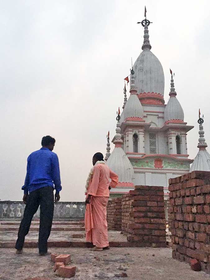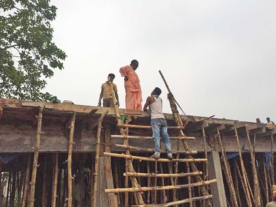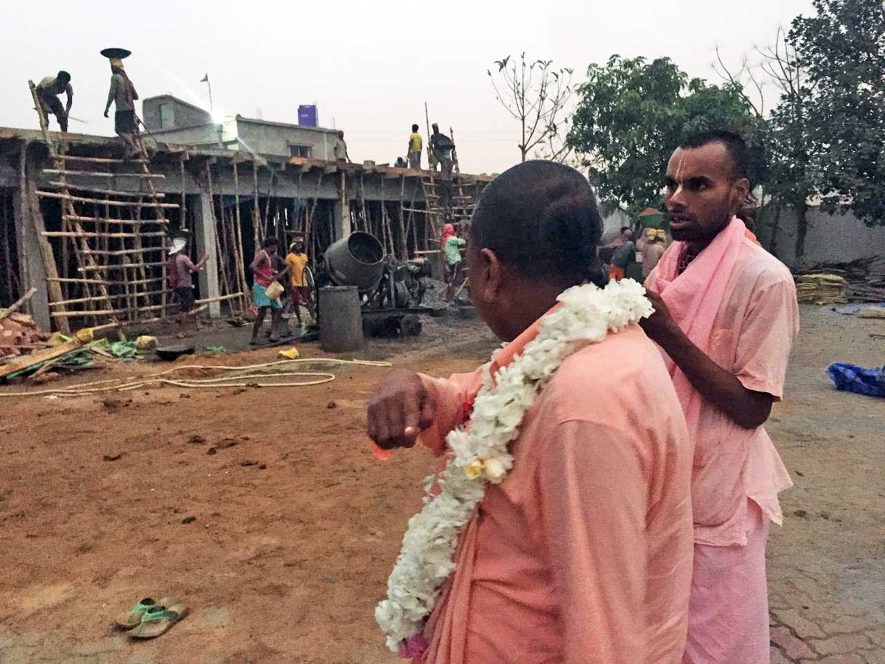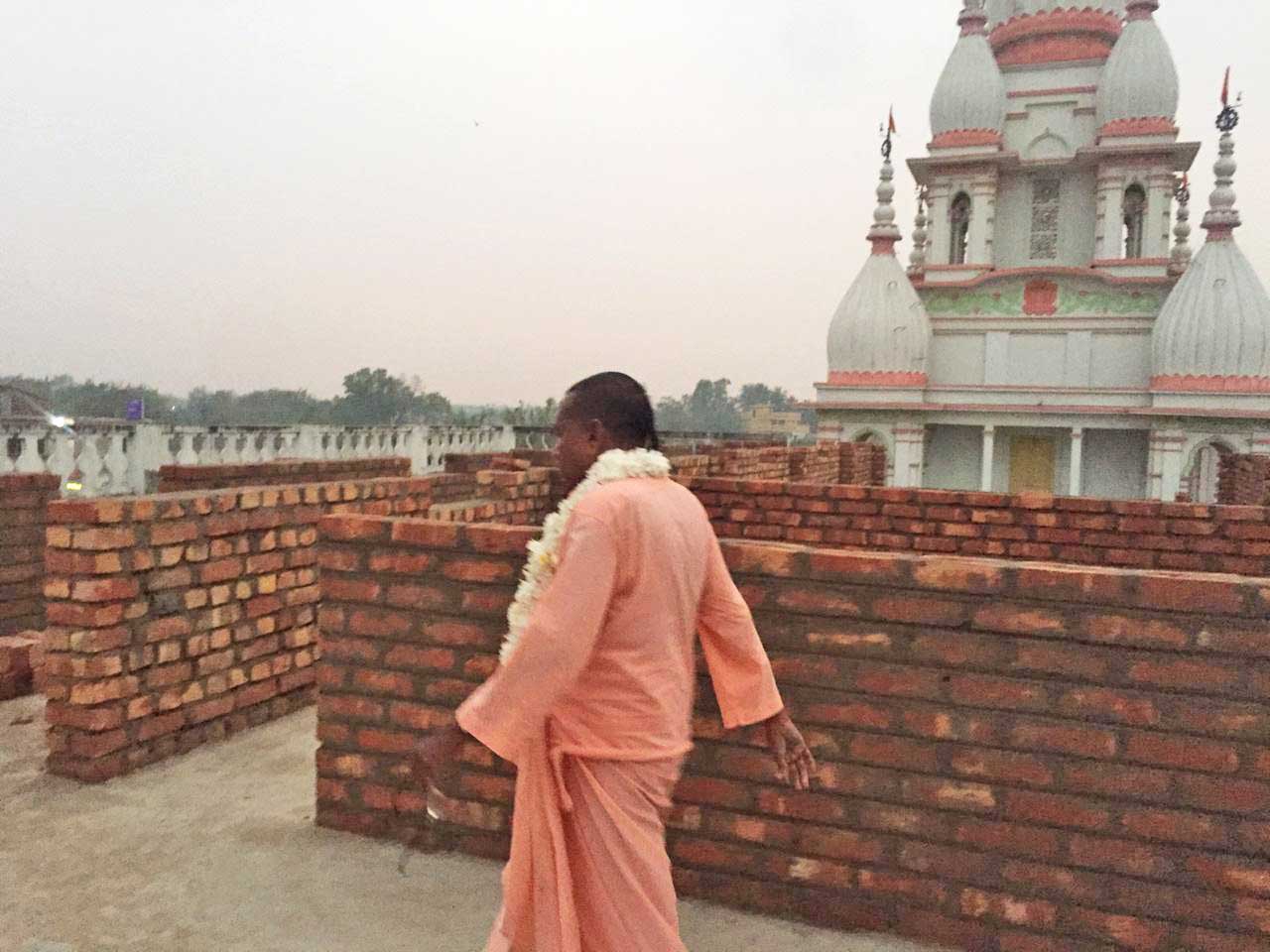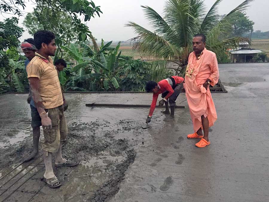 This year, His Divine Grace has taken the decision to extend the nat mandir and build more rooms for the devotees to stay as each year more and more pilgrims come to celebrate Sri Nityananda Trayodasi. During the festival earlier this year, His Divine Grace also remarked that when the nat mandir was projected, Srila B.S. Govinda Dev-Goswami Maharaj wondered, "You are making it so big, but will you get so many devotees to come?" Today, everybody can see the vision of His Divine Grace manifest: the nat mandir is just enough to accommodate everyone nicely during the festival. It is also known that His Divine Grace wanted to bring Srila Govinda Maharaj here by helicopter, so he was making the nat mandir with the view that its roof would be spacious enough to accommodate a helicopter's landing.