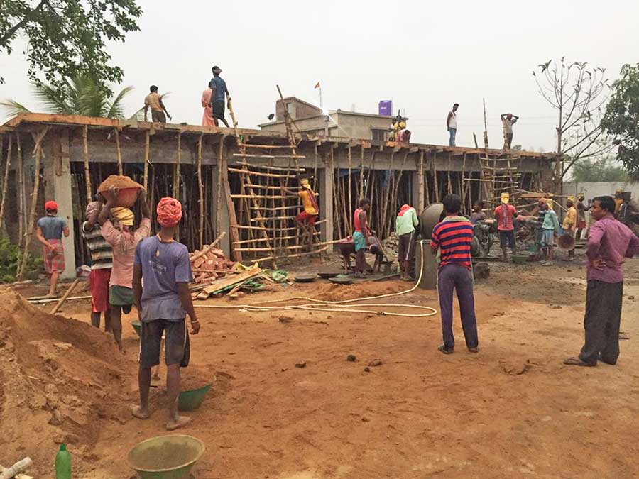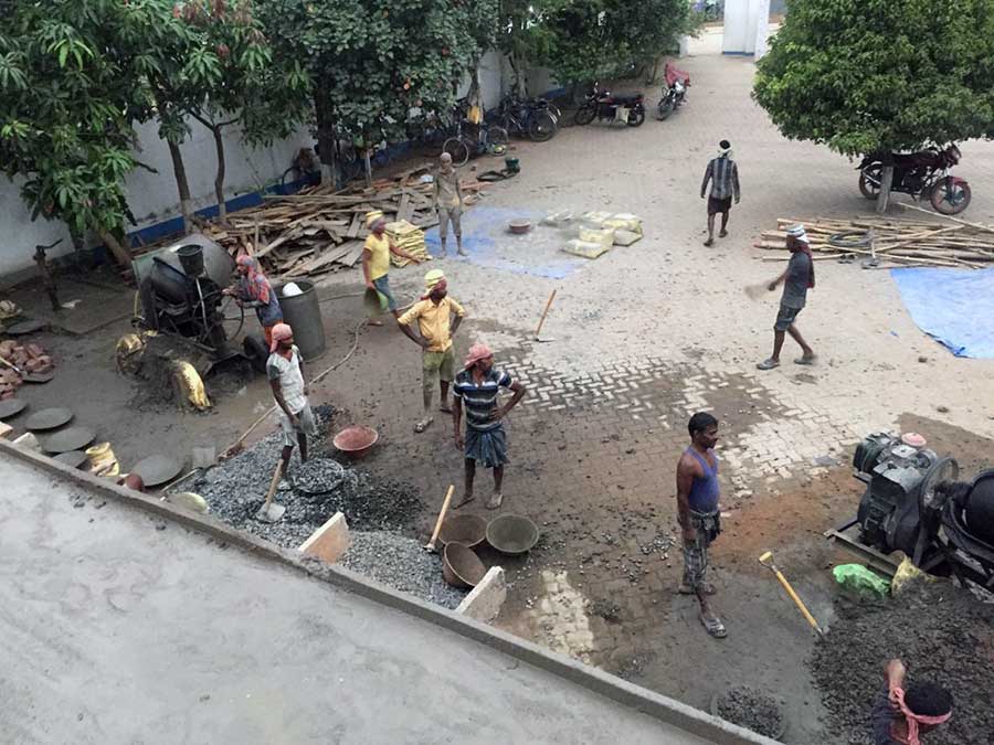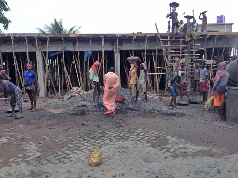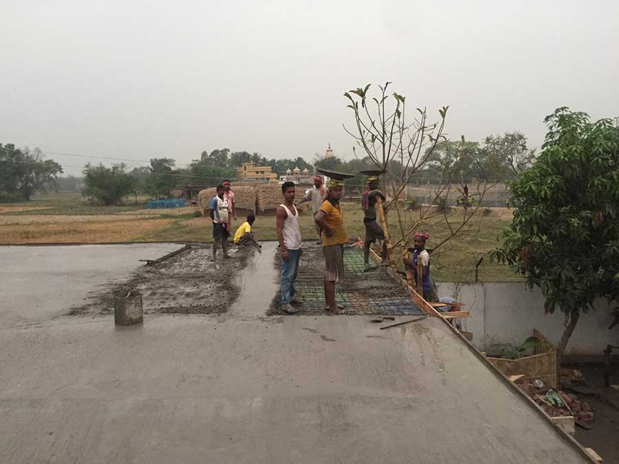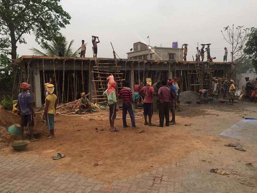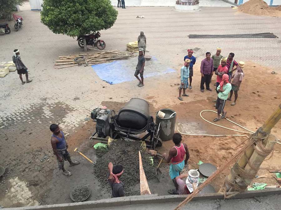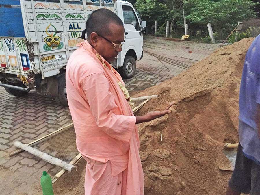 This year, His Divine Grace has taken the decision to extend the nat mandir and build more rooms for the devotees to stay as each year more and more pilgrims come to celebrate Sri Nityananda Trayodasi. During the festival earlier this year, His Divine Grace also remarked that when the nat mandir was projected, Srila B.S. Govinda Dev-Goswami Maharaj wondered, "You are making it so big, but will you get so many devotees to come?" Today, everybody can see the vision of His Divine Grace manifest: the nat mandir is just enough to accommodate everyone nicely during the festival. It is also known that His Divine Grace wanted to bring Srila Govinda Maharaj here by helicopter, so he was making the nat mandir with the view that its roof would be spacious enough to accommodate a helicopter's landing.