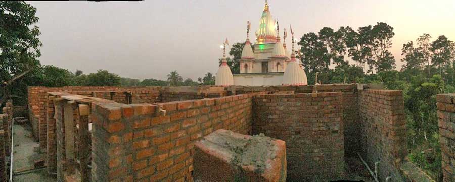 The construction of the top floor atop the nat mandir is progressing steadily.