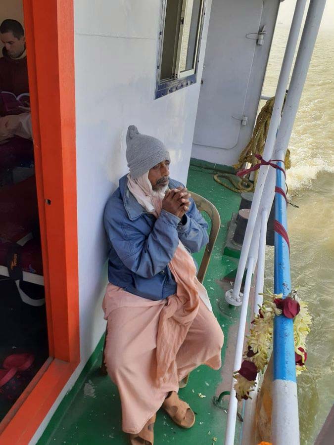 His Divine Grace takes all the devotees to Ganga Sagar by boat. The boat
