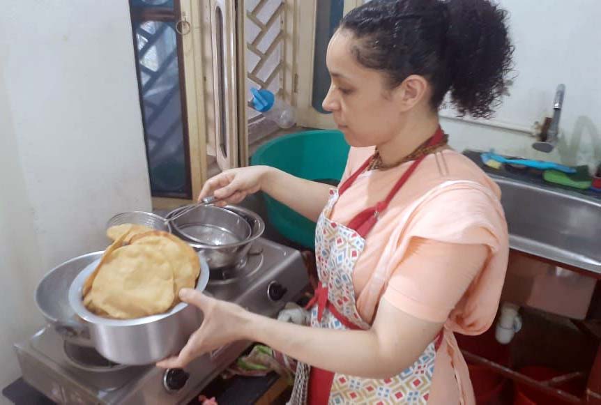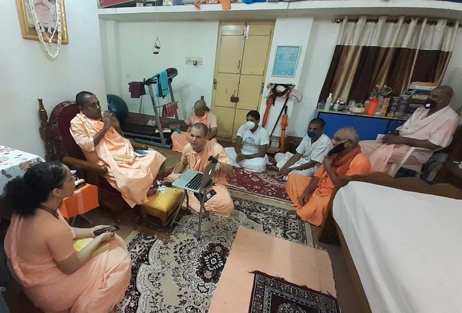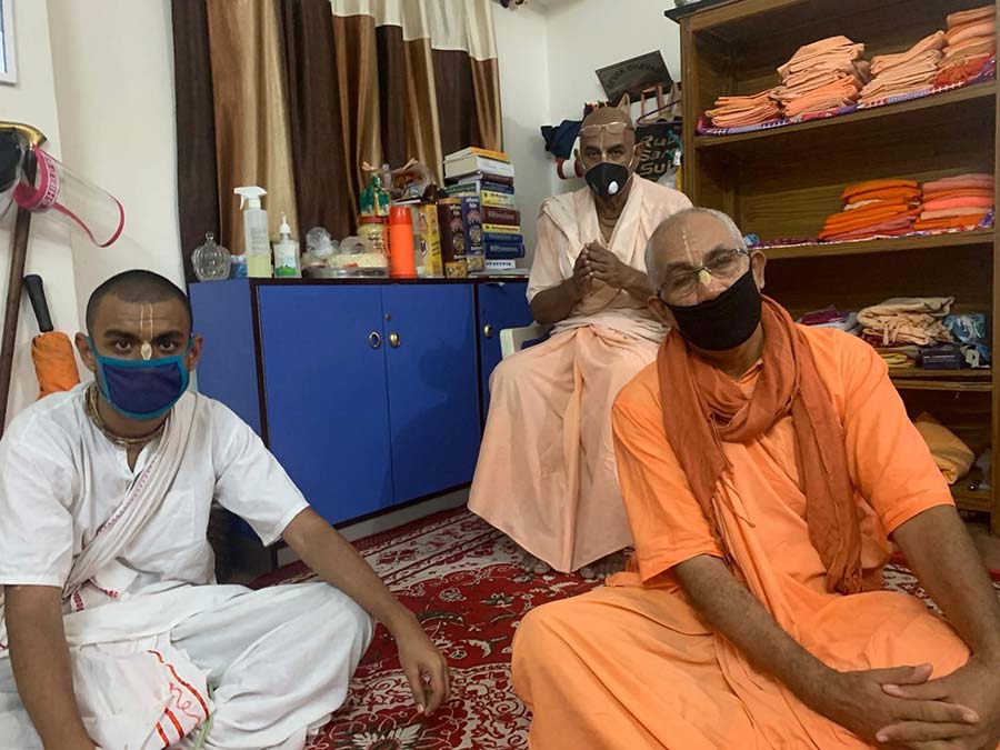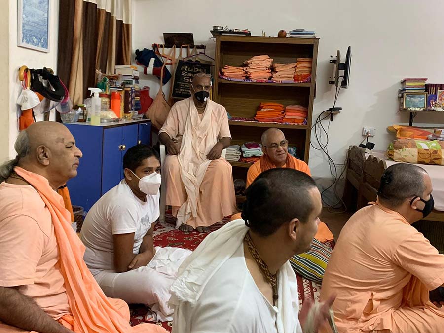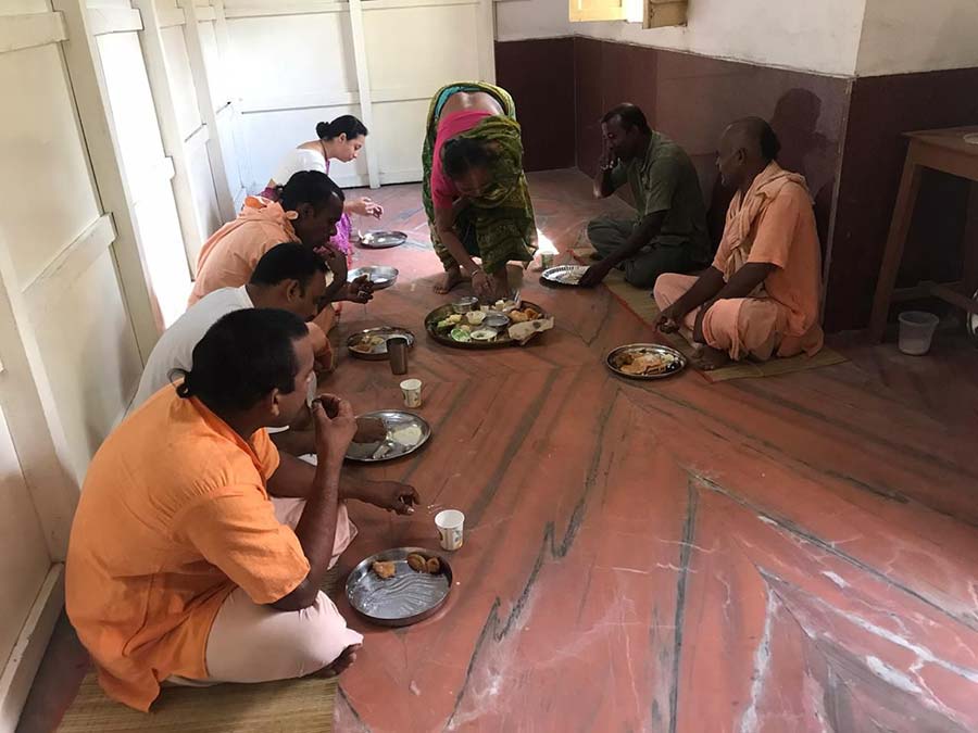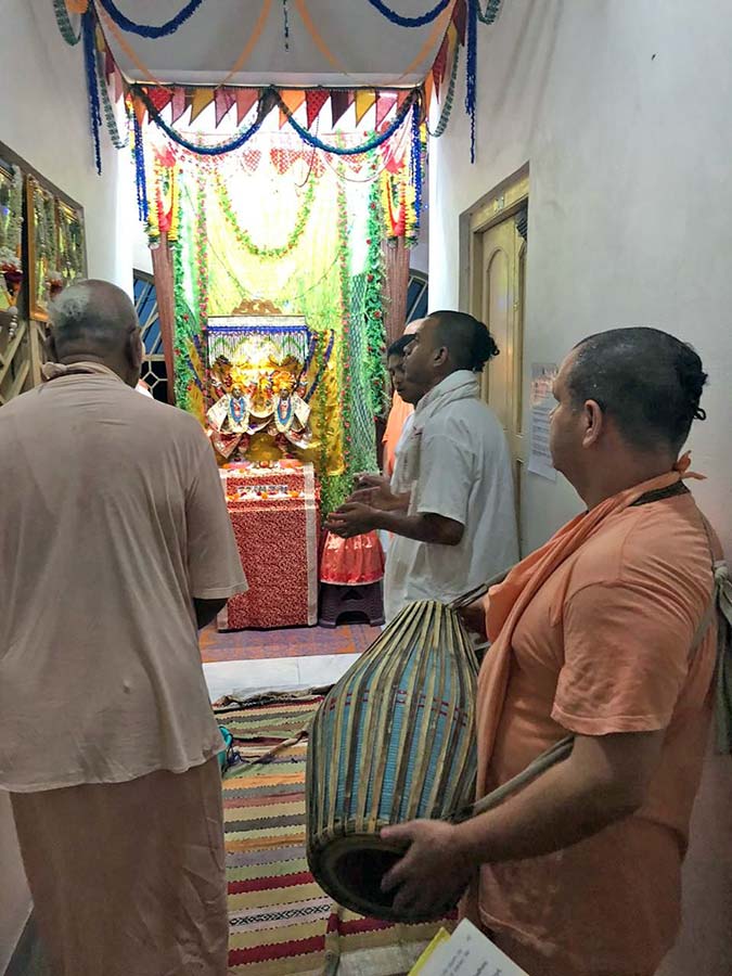 In the morning, devotees humbly honour maha-prasadam. As per current