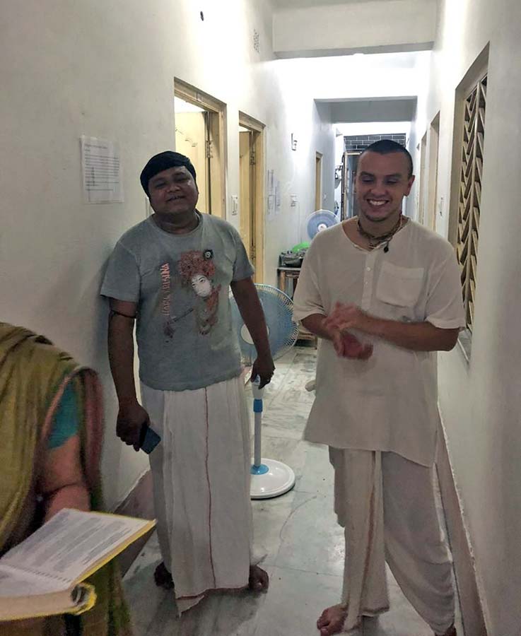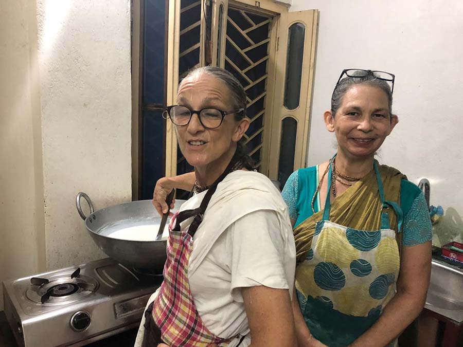Sri Krishna Sundari Devi Dasi and Sri Arati Devi Dasi serving happily in the