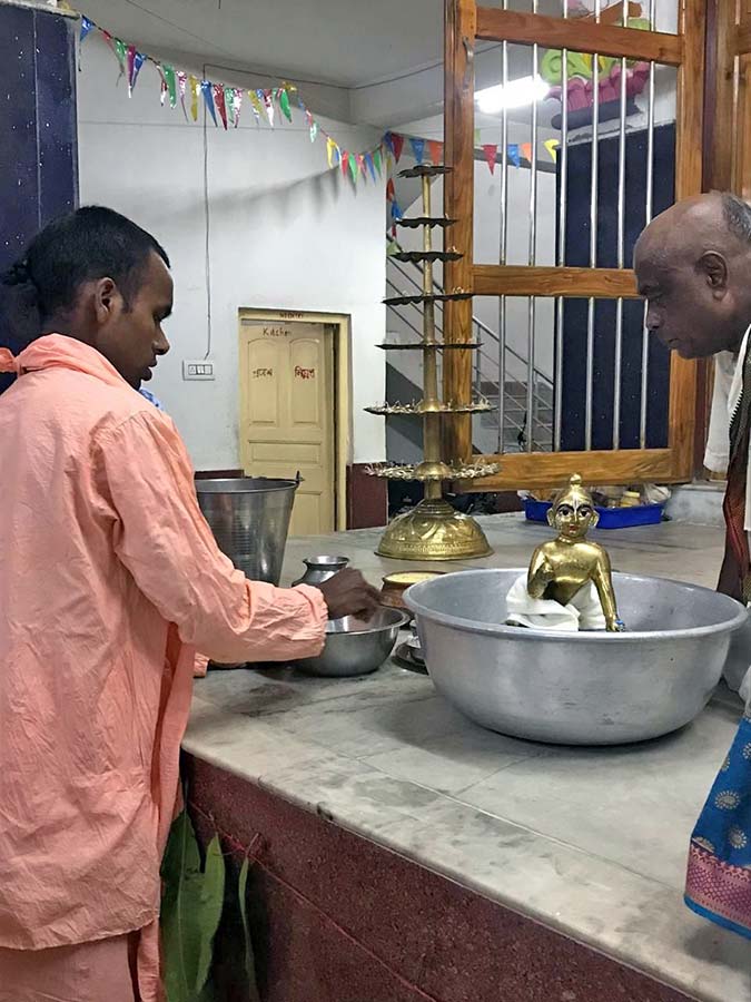 During the abhisekh of Sri Gopal. Sripad Niriha Maharaj is preparing the ingredients.