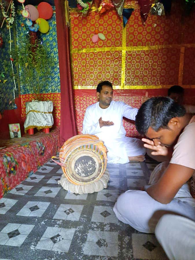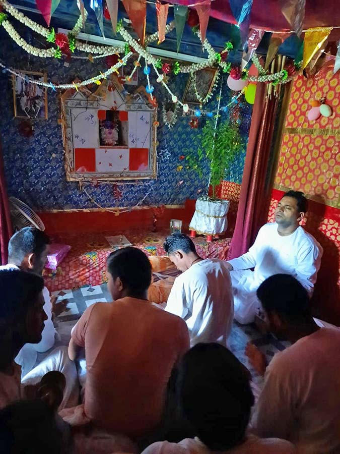Sri Gurupadpadma, the presiding worshippable Lord at the altar, non-different from Sriman Nityananda Prabhu and Srimati Radharani, is offered a special worship and offering on this way.