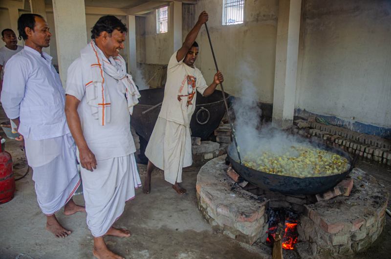 Above and below: at the temple kitchen of Their Lordships Sri Sri Guru Gaura Nityananda Prabhu.