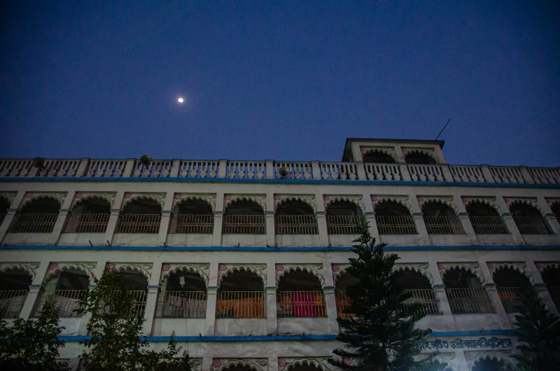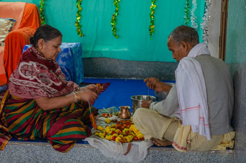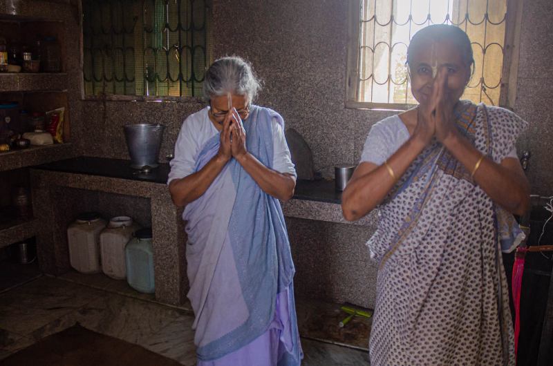 The services at the outbuilding kitchen continue throughout the day as pious ladies come to participate in the holy service.