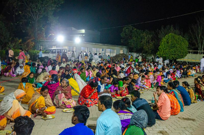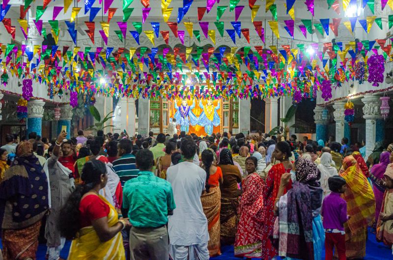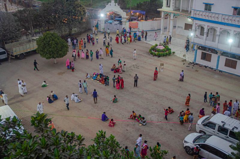 Hundreds of devotees joyfully arrive throughout the day, anxious to participate in this grand festival.
