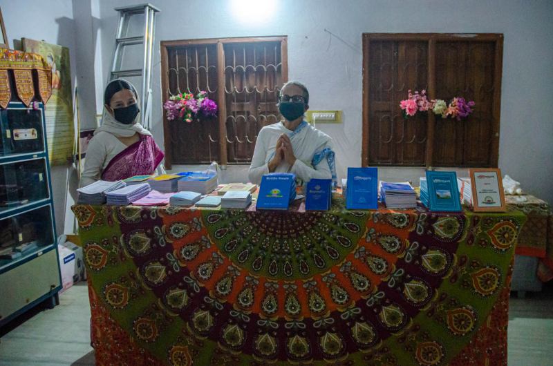 Dharitri Devi Dasi and Krishna Sundari Devi Dasi at the bookroom.