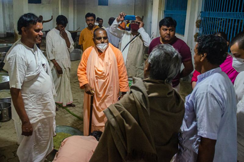 Before going to the nat mandir to preside at the evening programme, His Divine Grace comes to the kitchen to make sure everything is going on smooth.